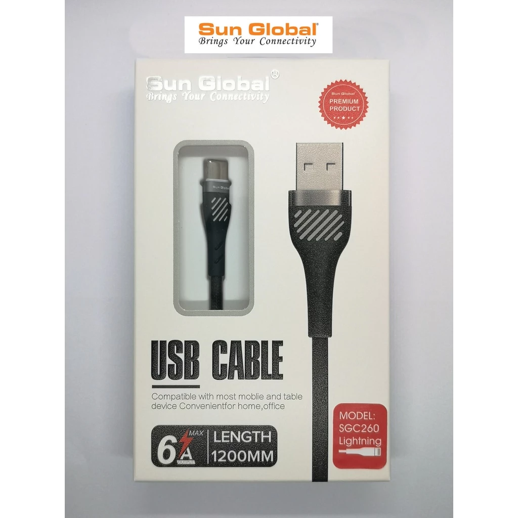 SUN GLOBAL (SGC260) FAST CHARGING CABLE 6A – IP USB (1.2M)